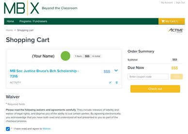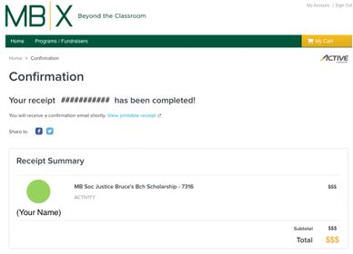 You will see a receipt number confirming your donation and an email receipt from MBX